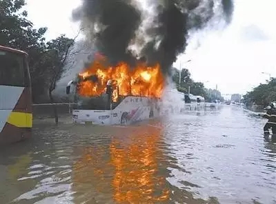圖為日前南京兩輛電動大巴在水中起火。(來源:江蘇省公安廳消防局)