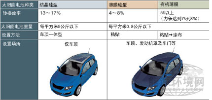 今后,除了車頂,還需要在發(fā)動機罩及車門上配備太陽能電池(圖14)。所面臨的課題是太陽能電池的重量。如果太陽能電池較重,會導致燃效惡化,現有結晶硅型太陽能電池模塊1平方米重5公斤左右。三菱化學稱:“通過采用薄膜硅型太陽能電池及有機薄膜太陽能電池等,可將每平方米的重量降低到0.8公斤以下。”