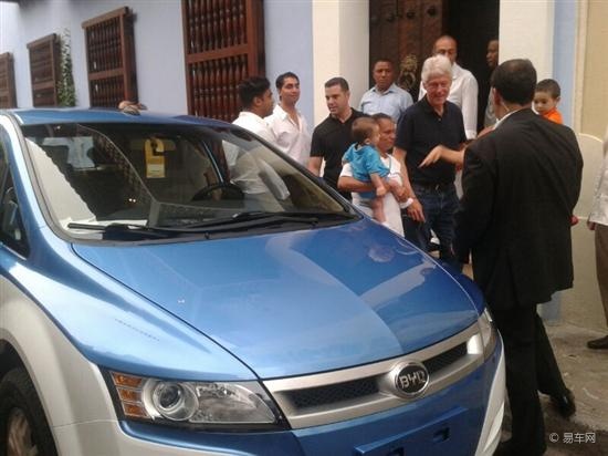 美國前總統(tǒng)克林頓準備搭乘比亞迪純電動出租車e6出行