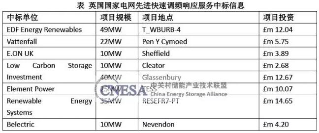 通過評(píng)審,英國國家電網(wǎng)從37個(gè)投標(biāo)單位中選取了8個(gè)勝出者,這8個(gè)投標(biāo)方的項(xiàng)目規(guī)模在10MW到49MW之間,總價(jià)值達(dá)到8640萬美元(£m 66)。英國國家電網(wǎng)將會(huì)于中標(biāo)方簽訂為期4年的服務(wù)合同。中標(biāo)單位和中標(biāo)信息見下表。