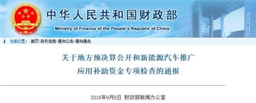 2月1日,財(cái)政部、科技部、工信部、發(fā)改委四部委聯(lián)合發(fā)文,開(kāi)始核查部分地區(qū)新能源汽車(chē)財(cái)政補(bǔ)助資金使用情況。