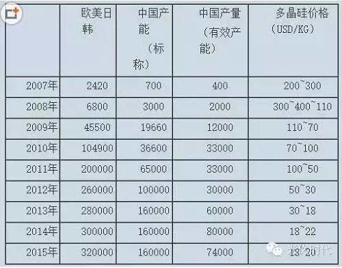 2007~2015年全球多晶硅產(chǎn)量和地區(qū)分布(產(chǎn)量:噸) 來源:搜狐