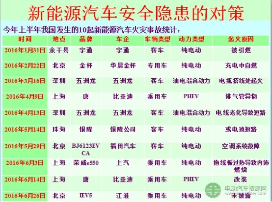 針對(duì)去年頻繁發(fā)生的起火事故,2015年8月6日,工信部發(fā)布《關(guān)于開展節(jié)能與新能源汽車推廣應(yīng)用安全隱患排查治理工作的通知》,通知顯示,近期個(gè)別地區(qū)出現(xiàn)純電動(dòng)客車、混合動(dòng)力客車自燃事故。為吸取教訓(xùn),預(yù)防類似事故再次發(fā)生,在各節(jié)能與新能源汽車推廣應(yīng)用城市、節(jié)能與新能源汽車生產(chǎn)企業(yè)開展安全隱患排查治理工作。通知要求,各示范城市要對(duì)自2009年以來推廣應(yīng)用的節(jié)能汽車、新能源汽車,對(duì)充電基礎(chǔ)設(shè)施,對(duì)公共領(lǐng)域推廣應(yīng)用的節(jié)能汽車、新能源汽車,對(duì)節(jié)能汽車、新能源汽車停放及電池箱的存放場(chǎng)地及配套管理措施進(jìn)行調(diào)查。