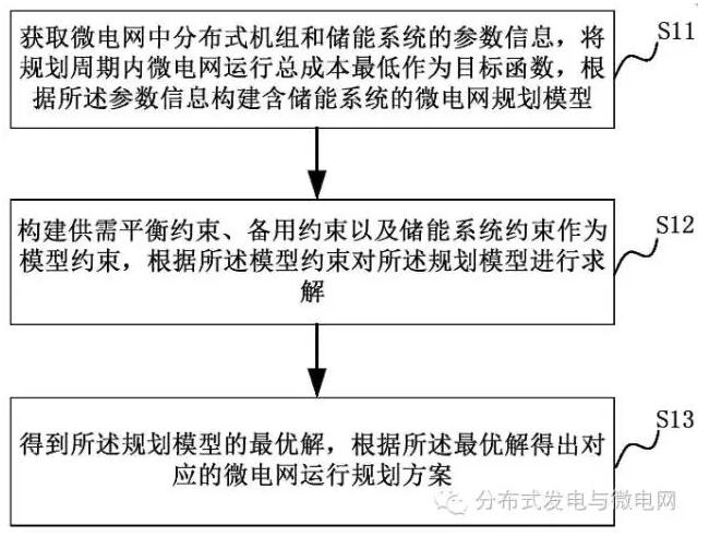 本發(fā)明涉及微電網運行規(guī)劃方法及系統(tǒng)。方法包括:獲取微電網中分布式機組和儲能系統(tǒng)的參數信息,將規(guī)劃周期內微電網運行總成本最低作為目標函數,根據參數信息構建含儲能系統(tǒng)的微電網規(guī)劃模型;獲取預先構建的模型約束,根據模型約束對規(guī)劃模型進行求解;得到規(guī)劃模型的最優(yōu)解,根據最優(yōu)解得出對應的微電網運行規(guī)劃方案。
