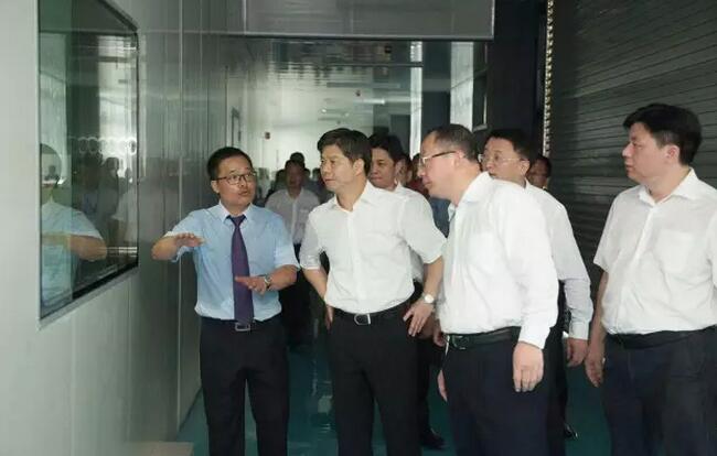 圖12:市委書記李薦國(guó)、市委副書記、市長(zhǎng)楊懿文一行及與會(huì)嘉賓參觀三迅生產(chǎn)線
