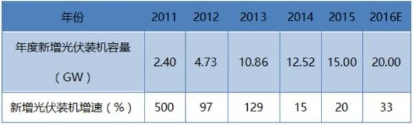 國(guó)內(nèi)可再生支持政策始終在加碼,制約光伏行業(yè)發(fā)展的電站質(zhì)量、限發(fā)、補(bǔ)貼發(fā)放不及時(shí)等問(wèn)題,都有望在“十三五”期間一并解決(國(guó)家局新和可再生司處長(zhǎng)董秀芬宣布“十三五”光伏裝機(jī)目標(biāo)上調(diào)50%,即2020年光伏發(fā)電規(guī)模從之前的1億千瓦上調(diào)至1.5億千瓦)也就是說(shuō)到2020年國(guó)內(nèi)總規(guī)劃裝機(jī)規(guī)模為150GW。根據(jù)報(bào)告中數(shù)據(jù)顯示,到2015年底,我國(guó)光伏累計(jì)裝機(jī)超過(guò)43GW,也就是說(shuō)未來(lái)5年內(nèi)光伏發(fā)電行業(yè)的年復(fù)合增長(zhǎng)率高達(dá)28.39%。