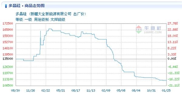 多晶硅原材料最近的價(jià)格走勢(shì)如下:
