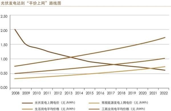 3.1.3但隨著光伏技術(shù)的不斷進(jìn)步,尤其是造價(jià)降低和能量轉(zhuǎn)換效率的提高,使得光伏發(fā)電的成本將逐年降低,未來(lái)光伏與火電的成本差價(jià)將逐漸接近甚至于更低。根據(jù)我國(guó)資源綜合利用協(xié)會(huì)發(fā)布的《中國(guó)光伏發(fā)電平價(jià)上網(wǎng)路線圖》,到2020年前后,光伏就將實(shí)現(xiàn)發(fā)電側(cè)的平價(jià)上網(wǎng)而不再依賴(lài)政府補(bǔ)貼,成為具備競(jìng)爭(zhēng)力的。