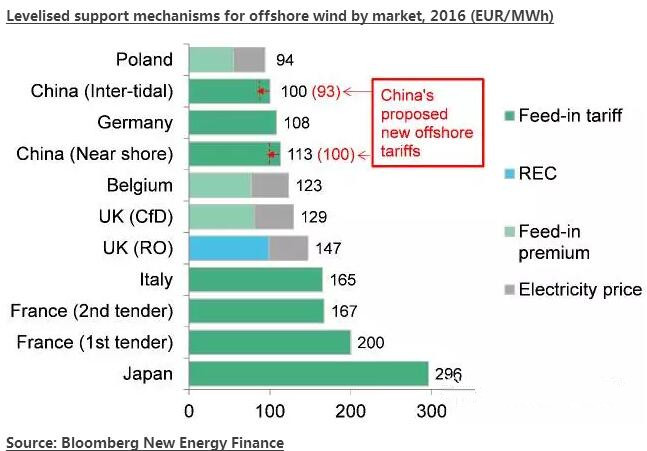 中國(guó)儲(chǔ)能網(wǎng)訊:9月29日,國(guó)家發(fā)改委出臺(tái)《關(guān)于調(diào)整新能源標(biāo)桿上網(wǎng)電價(jià)的通知(征求意見稿)》,擬下調(diào)風(fēng)電、光伏補(bǔ)貼力度,并且不再將生物質(zhì)發(fā)電納入可再生能源基金補(bǔ)貼范圍,轉(zhuǎn)而由各省定價(jià)并支付補(bǔ)貼。其中,變化最大的是光伏電價(jià),電站標(biāo)桿電價(jià)降幅在23.5-31.2%之間,分布式度電補(bǔ)貼降幅在28.6-52.4之間。除此之外,2018年陸上風(fēng)電電價(jià)比原計(jì)劃再降0.03元/kWh, 海上風(fēng)電電價(jià)也將下調(diào)0.05元/kWh,即近海項(xiàng)目電價(jià)下調(diào)5.9%,潮間帶項(xiàng)目下調(diào)6.7%。新政執(zhí)行時(shí)間為2017年1月1日。