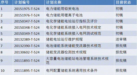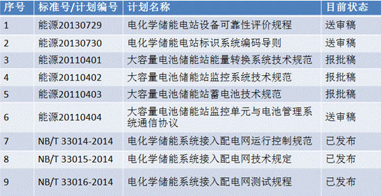 已經(jīng)發(fā)布的儲能標(biāo)準(zhǔn)