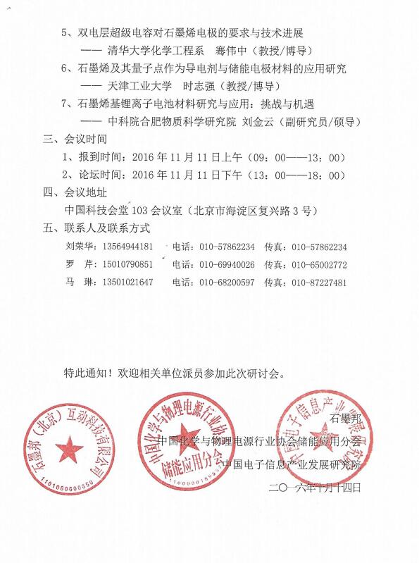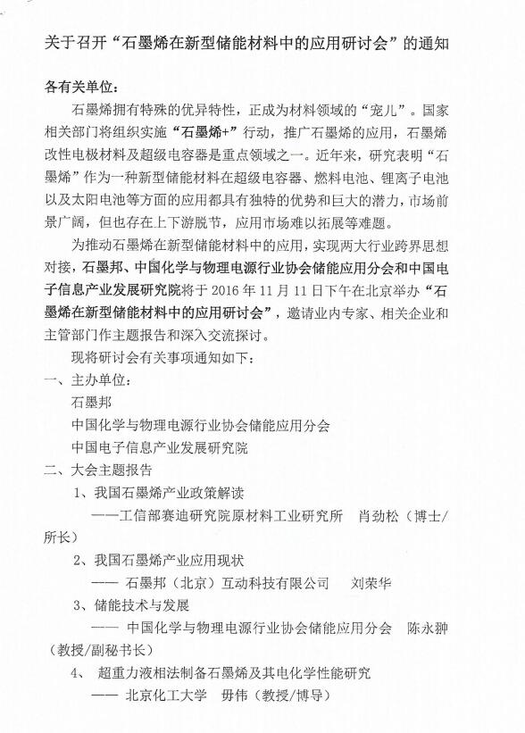 關(guān)于召開(kāi)“石墨烯在新型儲(chǔ)能材料中的應(yīng)用研討會(huì)”的通知