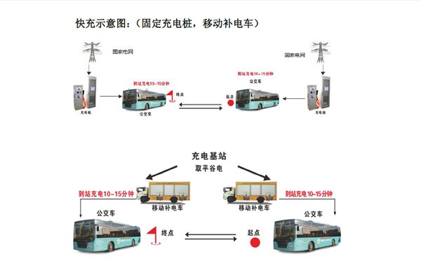 對此,創(chuàng)新聯(lián)盟推行“固移并舉”方針:采用快充技術(shù),應(yīng)用固定大功率充電樁;在無法建樁的情況下應(yīng)用移動補電車充電。目前我國運營中的新能源公交車主要有7種,其中的中等續(xù)駛里程淺充淺放公交車恰好就靈活運用到了這個模式。移動補電車十分便捷,可以作為分布式儲能電源或應(yīng)急電源,隨時隨地為電動汽車應(yīng)急充電。