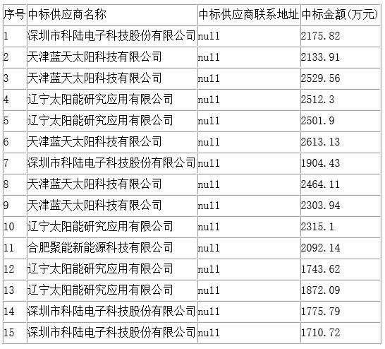 中國儲能網(wǎng)訊:“金太陽”二期太陽能戶用系統(tǒng)工程項目政府采購項目(招標(biāo)編號:XZCG-1608-73)評標(biāo)工作已結(jié)束,根據(jù)評審結(jié)果,現(xiàn)公示如下: