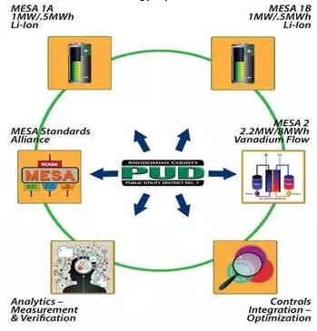 Snohomish County Public Utility District (PUD) 是華盛頓州第二大公用事業(yè)公司(publicly owned utility ),服務(wù)于33.7萬電力客戶。PUD已經(jīng)獲得華盛頓州清潔能源基金730萬美元的支持,在當(dāng)?shù)亻_展儲能示范和技術(shù)驗證項目。此外PUD借助該儲能項目還將與Bonneville Power Administration 和華盛頓大學(xué)聯(lián)合開展儲能應(yīng)用優(yōu)化和需求響應(yīng)的示范驗證,該部分也將得到華盛頓清潔能源基金100萬美元的支持。PUD將與1Energy Systems合作搭建儲能系統(tǒng)平臺(Modular Energy Storage Architecture),并于2016年9月開發(fā)完成儲能優(yōu)化控制系統(tǒng)(Energy Storage Optimizer)。