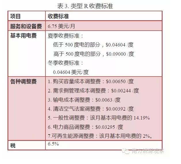2)基本用電費(fèi)。采用階梯電價(jià)的方式,但第二段的電價(jià)比第一段要低。每月用電量低于300度電的部分,電價(jià)為0.092945美元/度;高于300度電的部分,電價(jià)為0.054178美元/度。這個(gè)定價(jià)標(biāo)準(zhǔn)在一年內(nèi)基本固定,不同的季度之間稍微有所浮動(dòng)。