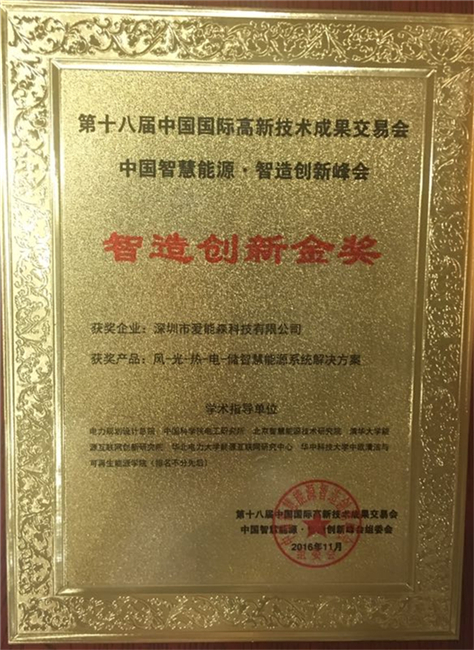 中國儲(chǔ)能網(wǎng)訊:11月17日,在第十八屆中國國際高新技術(shù)成果交易會(huì)上,深圳市愛能森科技有限公司(下文簡(jiǎn)稱愛能森)的“風(fēng)光熱電儲(chǔ)智慧能源系統(tǒng)解決方案”經(jīng)過初審、復(fù)審等嚴(yán)格評(píng)選,榮獲中國智慧能源·智造創(chuàng)新峰會(huì)“智造創(chuàng)新金獎(jiǎng)”。