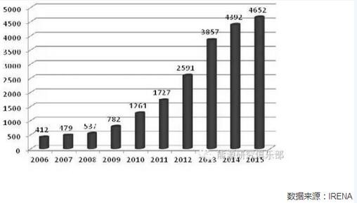 圖1全球太陽能光熱發(fā)電累計(jì)裝機(jī)容量(2006~2015年)