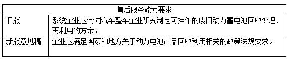 第七,售后服務(wù)能力方面,新版意見稿的要求更加具體,企業(yè)應(yīng)具有對動力電池故障快速響應(yīng)能力,以及動力電池使用、故障及主要問題總結(jié)分析的能力。另外,電池回收的責(zé)任主體不限于系統(tǒng)企業(yè),所有動力電池企業(yè)都應(yīng)滿足國家和地方關(guān)于動力電池產(chǎn)品回收利用相關(guān)的政策法規(guī)要求。