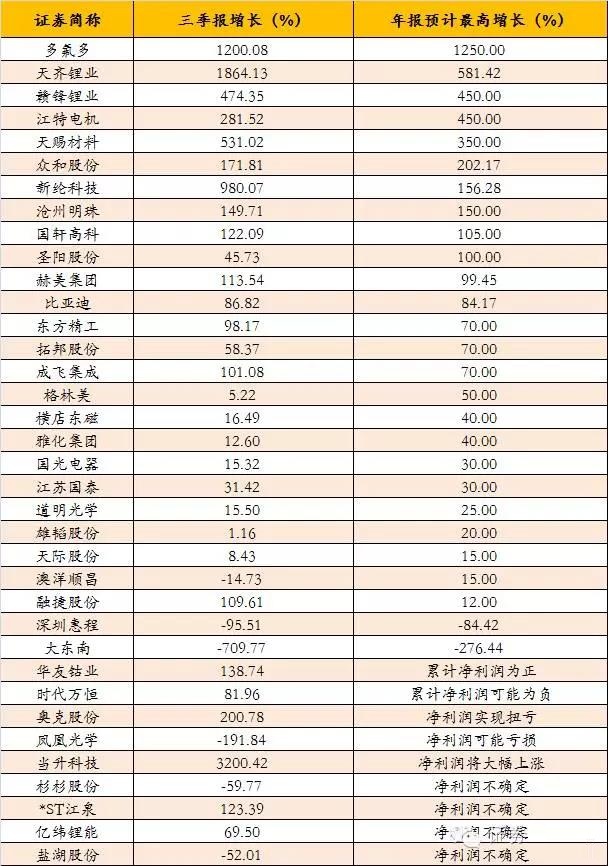 年底是炒作業(yè)績和高送轉(zhuǎn)預(yù)期的黃金時期,數(shù)據(jù)顯示,目前共有36家鋰電池公司公布了2016年業(yè)績預(yù)告,其中,多氟多、天齊鋰業(yè)、江特電機、贛鋒鋰業(yè)、天賜材料、眾和股份、新綸科技、滄州明珠等8家公司最低業(yè)績增速預(yù)計翻倍,多氟多以12倍增速高居榜首,江特電機、眾和股份、多氟多、滄州明珠、圣陽股份、拓邦股份、橫店東磁、雅化集團、國光電器、格林美、雄韜股份、澳洋順昌等多家公司業(yè)績最大增速預(yù)計仍有望超過三季度的增長幅度。