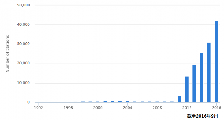 根據(jù)IEA的測(cè)算,美國(guó)充電基礎(chǔ)設(shè)施主要分布在東部和西部的沿海地區(qū),2015年底,全國(guó)公共充電樁大約31674個(gè),到2016年9月份已經(jīng)突破4.4萬了。從圖3來看,隨著電動(dòng)汽車的銷量和保有量的快速提升,公共充電設(shè)施也隨之快速增長(zhǎng),但是由于大部分電動(dòng)汽車車主都是習(xí)慣于在家充電或者在公司內(nèi)充電。