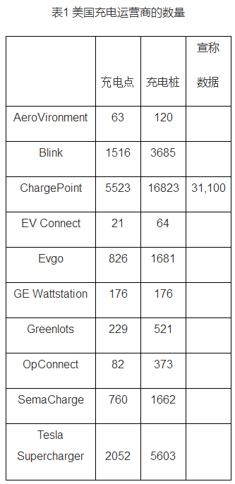 充電設(shè)施企業(yè)運(yùn)營(yíng)的充電站。美國(guó)充電基礎(chǔ)設(shè)施大部分是由充電設(shè)施專業(yè)運(yùn)營(yíng)商經(jīng)營(yíng)的充電站。其中,ChargePoint是美國(guó)最大的充電基礎(chǔ)設(shè)施運(yùn)營(yíng)商,截至2016年11月,該公司建設(shè)的充電樁數(shù)量宣稱為31100個(gè),但在美國(guó)能源部登記錄入的為16823個(gè),這里面存在的誤差可能是雙頭搶的記錄問題。