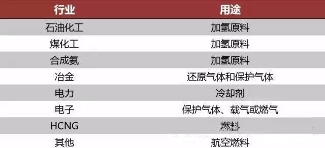 中國目前年產氫氣2000萬噸,其中50%用于石油和煤化工領域,45%用于合成氨。所以中國對于氫氣的應用主要集中在石化生產領域,即氫氣的傳統(tǒng)使用領域(表2)。