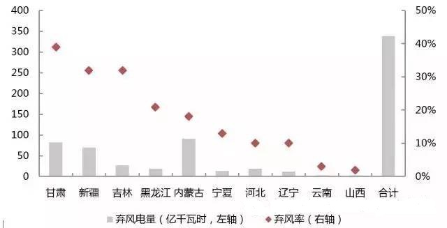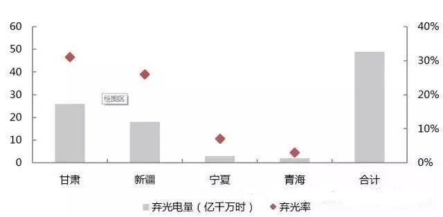 國家能源局發(fā)布的《2015年度全國可再生能源電力發(fā)展監(jiān)測評價報告》顯示,2015年我國棄風電量339億千瓦時(圖3),同比增加213億千瓦時,甘肅、新疆和吉林的棄風率均超過30%;西北地區(qū)出現(xiàn)了較為嚴重的棄光現(xiàn)象(圖4),甘肅棄光電量26億千瓦時、棄光率31%,新疆棄光電量18億千瓦時、棄光率26%。
