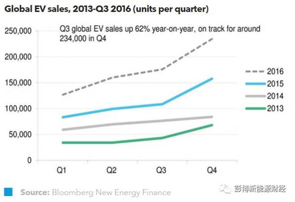 中國儲(chǔ)能網(wǎng)訊:2016年第三季度全球電動(dòng)汽車銷量同比增長62%,其中中國和北美市場的增長最為顯著。憑借著純電動(dòng)車的熱賣,中國市場的環(huán)比增長再次領(lǐng)先。北美同比增長則為62%,縮短了與歐洲的距離。我們認(rèn)為到2016年底,電動(dòng)車年度銷售量將達(dá)到70萬臺左右,交出一份出色的答卷。鋰離子電池的需求量快速上升,2016年第三季度的數(shù)字顯示,同比增長為105%。
