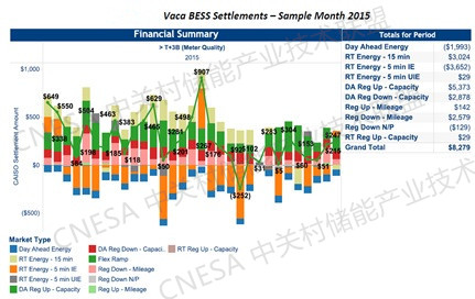 圖1:2015年8月Vaca儲(chǔ)能項(xiàng)目參與CAISO電力市場(chǎng)收益結(jié)構(gòu)圖