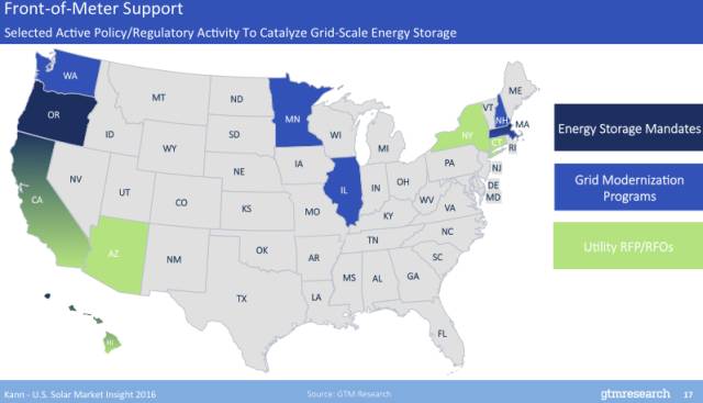 我們?cè)谥菁?jí)政府或獨(dú)立調(diào)度機(jī)構(gòu)(ISO)中,正尋找那些在行動(dòng)層面上為儲(chǔ)能創(chuàng)造支持性的市場(chǎng)條件的地區(qū)。慶幸的是,我們已經(jīng)看到了這樣的地區(qū)的存在。