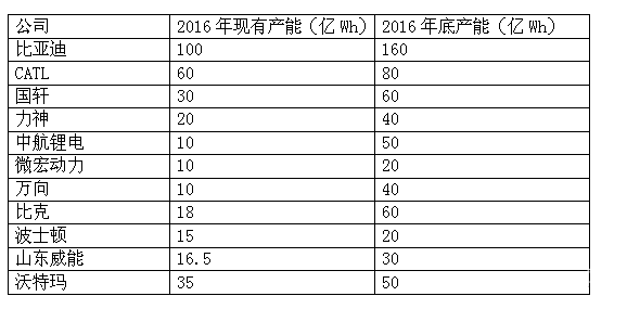 國(guó)內(nèi)主流動(dòng)力電池企業(yè)產(chǎn)能情況