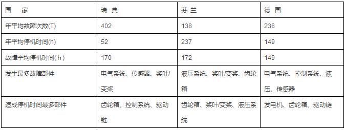 表1―2: 國內(nèi)部分風(fēng)電機(jī)組故障統(tǒng)計表: