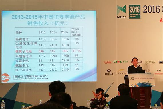 行業(yè)各類電池的一些整體的情況,從數(shù)量上來說鋰離子電池去年增長非常快,大概54.9%,當(dāng)然包括了動(dòng)力電池,這是電池行業(yè)主要產(chǎn)品他的一些銷售情況。發(fā)展最大領(lǐng)域可能還是鉛酸電池,傳統(tǒng)領(lǐng)域有1400億規(guī)模,鋰離子電池的話我們銷售收入去年增長37.7%,達(dá)到了985億元。整個(gè)鋰離子電池去年是發(fā)展機(jī)會(huì),各家出現(xiàn)供不應(yīng)求的局面,主要在國家政策支部下,新能源汽車的快速發(fā)展。