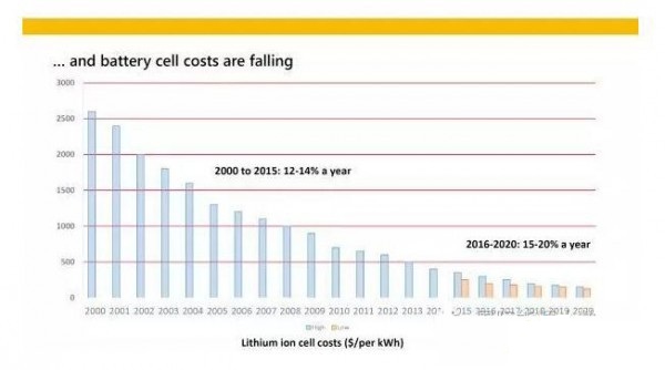 中國(guó)儲(chǔ)能網(wǎng)訊:根據(jù)Benchmark Mineral Intelligence的數(shù)據(jù),2000年至2015年間鋰電池的成本每年下降幅度在12-14%之間,從每千瓦時(shí)2500美元降至300美元以下;預(yù)計(jì)未來(lái)5年成本將持續(xù)下降,下降幅度每年可達(dá)15-20%。