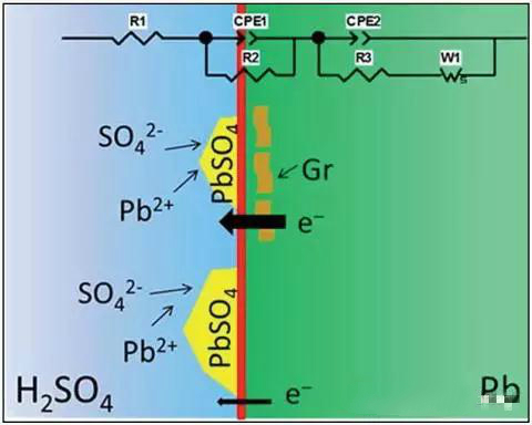 石墨烯材料在鉛極板中的工作原理示意圖