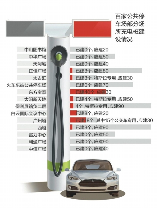 廣州市工信委今年8月組織實(shí)施“雙百行動”,百家黨政機(jī)關(guān)、公共機(jī)構(gòu)及重點(diǎn)企業(yè),百個公共停車場加快建設(shè)充電設(shè)施,列出到2016年底和2018年底的建設(shè)目標(biāo)。中信、富力中心等重要的CBD寫字樓充電樁為零。南都記者隨機(jī)走訪百個公共停車場中的15個,除了東方寶泰外,全部達(dá)不到建設(shè)目標(biāo),東站、中山圖書館等公共場所均未建設(shè)充電樁。