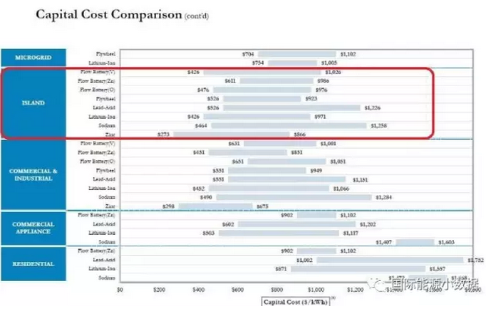如果單看應(yīng)用于島嶼電網(wǎng)的各類儲能技術(shù)初投資,其成本(美元/千瓦時)為——