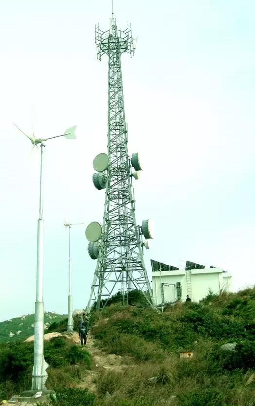 技術特點:根據(jù)當?shù)毓╇姇r間短,連續(xù)陰雨時間長且風力不穩(wěn)定的特點,采用風光柴電互補混合供電系統(tǒng)模式進行供電,以保障通信基站連續(xù)運行。