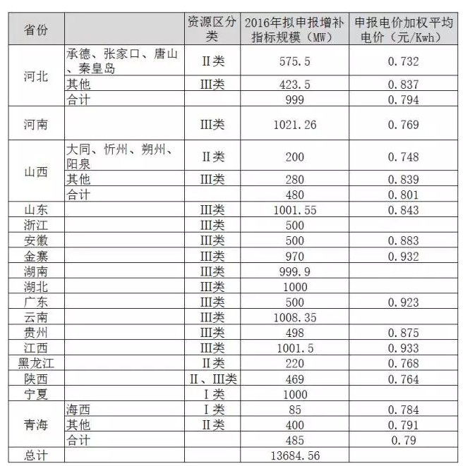 第一,2016年底的增補(bǔ)指標(biāo)實(shí)際上并不是真正意義上的調(diào)增,而是預(yù)支2017年各省普通光伏電站指標(biāo),“增補(bǔ)指標(biāo)500MW以內(nèi)的,從2017年指標(biāo)中扣除,增補(bǔ)超過500MW的,2017年不再安排指標(biāo)”。此次增補(bǔ)指標(biāo)申報(bào),包括山東、河北、河南、湖南等省份計(jì)劃申報(bào)規(guī)模超1GW,這也就意味著這些省份2017年將不再分配普通光伏電站指標(biāo)。