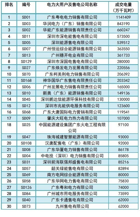 來(lái)源:根據(jù)廣東電力交易中心2017年1月6日發(fā)布的《關(guān)于2017年雙邊協(xié)商交易成交情況的通告》之附件1《2017年大用戶(hù)及售電公司雙邊協(xié)商成交明細(xì)表》中數(shù)據(jù)排序摘錄