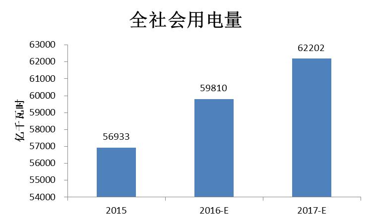 綜合來看,預(yù)計(jì)2017年我國全社會(huì)用電量增速約4%,比2016年有所放緩。首先,12月9日召開的政治局會(huì)議提出的“穩(wěn)中求進(jìn)”工作總基調(diào)對指導(dǎo)明年經(jīng)濟(jì)工作具有特別重要的意義。此外,強(qiáng)調(diào)要深入推進(jìn)“三去一降一補(bǔ)”,推動(dòng)五大任務(wù)有實(shí)質(zhì)性進(jìn)展。這就意味著2017年第二產(chǎn)業(yè)、特別是高能耗行業(yè)用電量增長將維持負(fù)增長或低增長態(tài)勢,不會(huì)對全社會(huì)用電產(chǎn)生積極貢獻(xiàn)。其次,產(chǎn)業(yè)結(jié)構(gòu)調(diào)整和轉(zhuǎn)型升級效果持續(xù)顯現(xiàn),第三產(chǎn)業(yè)用電量增速將繼續(xù)保持高速增長,電力消費(fèi)結(jié)構(gòu)持續(xù)調(diào)整。另外,居民用電量增長將繼續(xù)保持較快的增長,不過考慮到2016年的溫度負(fù)荷因素,預(yù)計(jì)2017年居民生活和三產(chǎn)增用電速將低于2016年水平。
