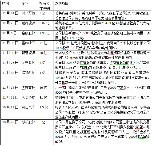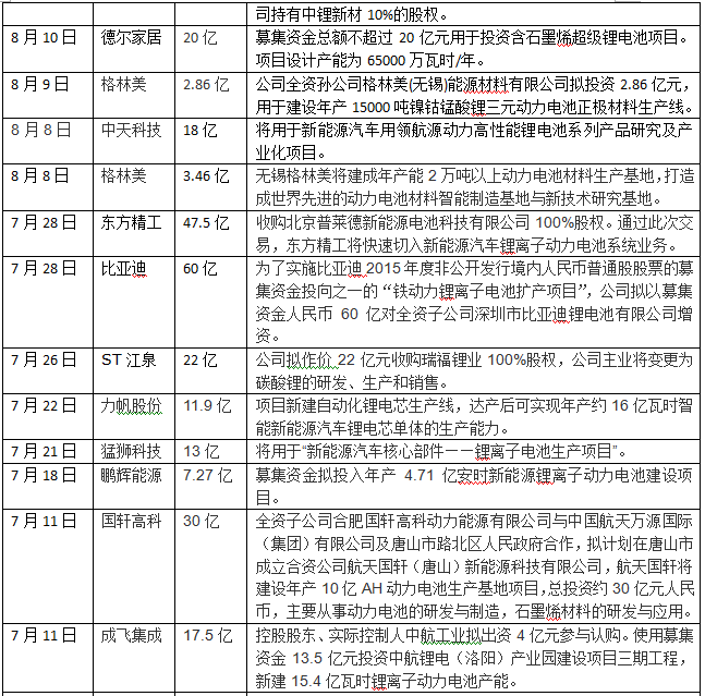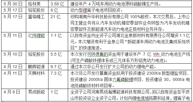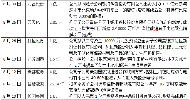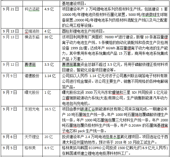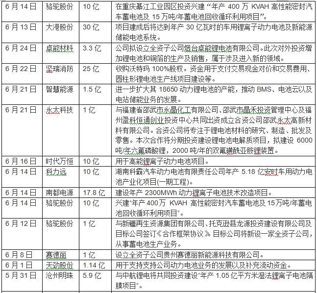其中,比亞迪、智慧能源、大港股份、國軒高科、東方精工、橫店東磁一次性投向動力電池領(lǐng)域超30億元,智慧能源、富臨精工、長信科技、國軒高科、西部資源、尤夫股份、堅瑞消防、東旭光電、天齊鋰業(yè)、德爾家居、東方精工、ST江泉、億緯鋰能、天際股份、科力遠、南都電源、堅瑞消防、駱駝股份、猛獅科技等企業(yè)一次性投入資金超十億元。