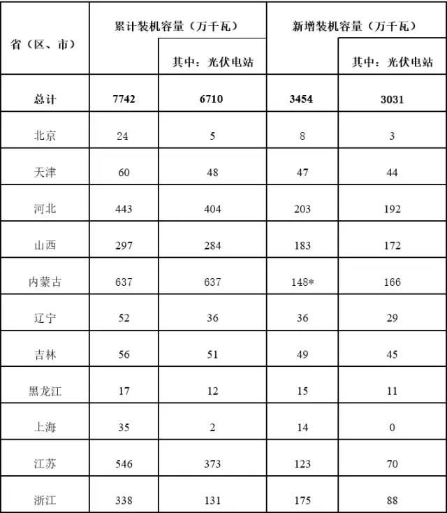*注:2015年內(nèi)蒙古、新疆的分布式發(fā)電統(tǒng)計數(shù)據(jù)存在誤差,分別為18萬和4萬千瓦,在本表數(shù)據(jù)中進(jìn)行了相應(yīng)核減,故兩省新增裝機(jī)容量小于其光伏電站裝機(jī)容量。
