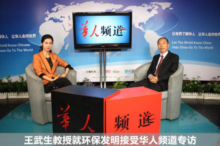 ▲上圖為王武生就環(huán)保發(fā)明接受媒體專(zhuān)訪