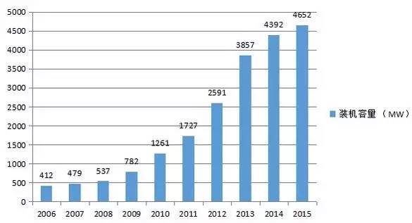 全球太陽能熱發(fā)電累計裝機容量(2006~2015年)