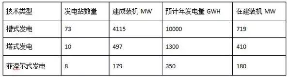 各種太陽能熱發(fā)電技術裝機容量和發(fā)電量統(tǒng)計(粗略統(tǒng)計,截至2016年2月)