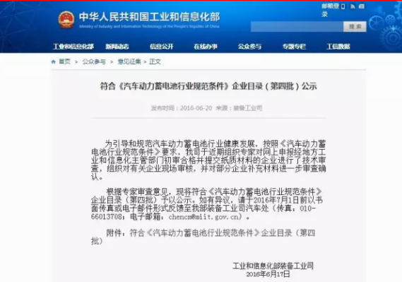 2016年6月,億緯鋰能入選了工信部公示的“符合《汽車動力蓄電池行業(yè)規(guī)范條件》企業(yè)目錄(第四批)”。在工信部發(fā)布的第288、289、290批新能源汽車入圍公告中,億緯鋰能更是連續(xù)三次排名動力電池裝配車型數(shù)量第一,市場布局成效顯著。
