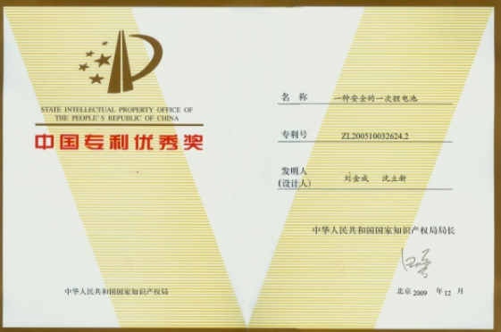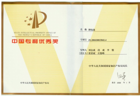 2016年底,國家知識產(chǎn)權(quán)局發(fā)布了《關(guān)于第十八屆中國專利獎授獎的決定》(國知發(fā)管字〔2016〕95號),億緯鋰能的發(fā)明專利“一種圓柱電池電容器”(專利號:ZL201210591404.3)榮獲第十八屆中國專利優(yōu)秀獎。專利通過對現(xiàn)有電池電容器的密封技術(shù)進行改進,突破解決了長期影響電池電容器使用的環(huán)境、壽命、安全性共性關(guān)鍵性技術(shù)問題,已經(jīng)大批量生產(chǎn)和銷售,取代了進口高性能電池電容器,應用于智能交通(ETC不停車收費系統(tǒng)),智能表計(水表、電表、氣表),GPS智能追蹤(貨車、輪船、火車等物流行業(yè)GPS定位系統(tǒng)),E-Call,射頻識別系統(tǒng),緊急設備,電動汽車等,產(chǎn)生了顯著的經(jīng)濟效益和社會效益。本專利技術(shù)在動力電池的開發(fā)及特殊領域用電池具有很好的應用前景,且在電池環(huán)境、壽命、安全領域具有重要的社會價值。