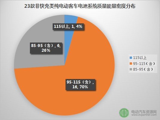 從電池系統(tǒng)質(zhì)量能量密度看,23款非快充純電動(dòng)客車(chē)中電池能量密度最高達(dá)115.02Wh/kg,可獲得1.2倍補(bǔ)貼。該電池供應(yīng)商為惠州比亞迪,電池類(lèi)型為磷酸鐵鋰。此外,電池質(zhì)量能量密度在95-115Wh/kg的車(chē)型有16款,可獲得1倍補(bǔ)貼,動(dòng)力電池供應(yīng)商全部為寧德時(shí)代新能源。其余6款的電池質(zhì)量能量密度在85-95Wh/kg,可獲得0.8倍補(bǔ)貼,動(dòng)力電池供應(yīng)商有力神動(dòng)力、力神動(dòng)力/中通客車(chē)、北京普萊德、北京國(guó)能、合肥國(guó)軒。