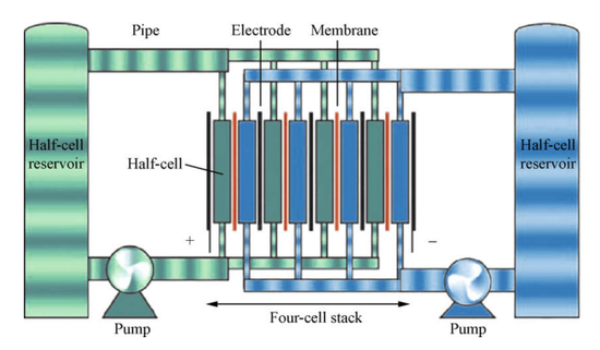 此外,液流電池能量效率高達(dá)75%~80%,啟動(dòng)速度只需0.02s,且電池部件多為廉價(jià)的碳材料,無需貴金屬作催化劑。